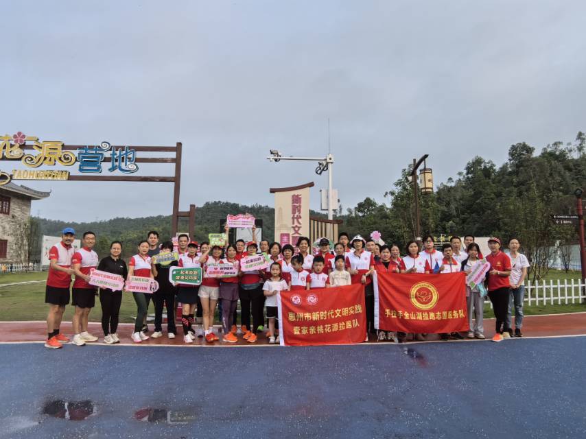 口号:早上好,新时代文明实践在惠州,为爱弯腰“益”起捡跑,垃圾不落地,惠州更美丽,加油。加油。